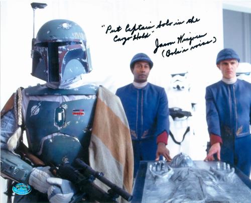 Jason Wingreen autographed 8x10 photo (Voice of Boba Fett) Image SC6 inscribed Put Captain Solo in the Cargo Hold Boba's Voice. Signed items come fully certified with Certificate of Authenticity and tamper-evident hologram.