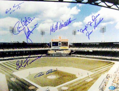 Comiskey Park autographed 11x14 Photo (Chicago White Sox 8 Legends) Hoyt Wilhelm Jim Rivera Bob Keegan 8-20-57 Billy Pierce Ron Kittle 83 AL ROY Bucky Dent Jim Landis & Ed Farmer. Item certified with a tamper-evident serialized hologram and certificate of authenticity.