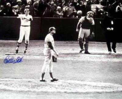 Carlton Fisk autographed photo (Boston Red Sox 1975 World Series Game 6 Winning Home Run Wave) 16x20 Image 2. Signed items come fully certified with Certificate of Authenticity and tamper-evident hologram.
