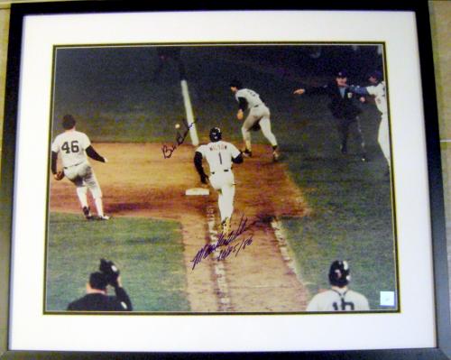 Mookie Wilson and Bill Buckner autographed photo (1986 World Series Game 6 Mets Red Sox) 16x20 photo matted and framed 20x24. Signed items come fully certified with Certificate of Authenticity and tamper-evident hologram.