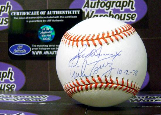 Bucky Dent and Mike Torrez autographed Baseball inscribed 10-2-78 (Red Sox Yankees Famous Home Run Duo 1978).