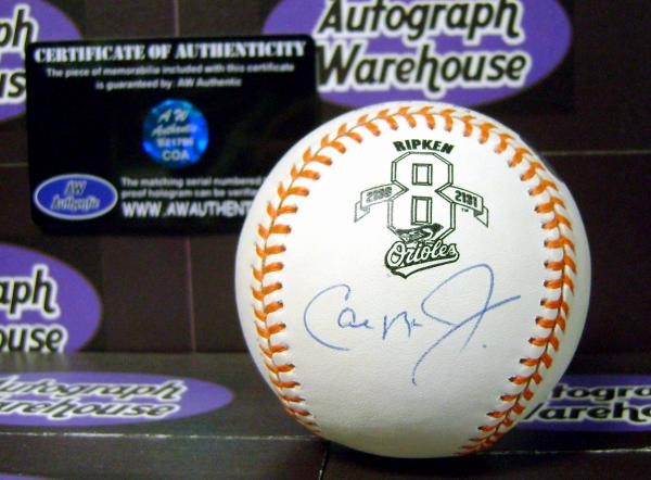 Cal Ripken Jr. autographed Ripken Day American League Baseball (Cal Ripken Jr Authentication Hologram). Item comes fully certified with a tamper-evident serialized hologram and certificate of authenticity.