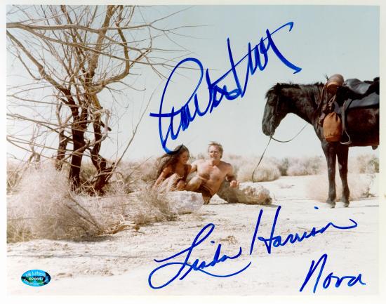 Charlton Heston and Linda Harrison autographed photo (Planet of the Apes) 8x10 Image 4 framed matted. Item comes fully certified with a tamper-evident serialized hologram and certificate of authenticity.