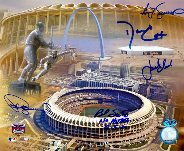 Signed by - Jack Clark Danny Cox Pedro Guerrero Ted Simmons and Bud Smith.