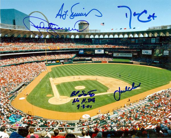 Signed by - Jack Clark Danny Cox Pedro Guerrero Ted Simmons and Bud Smith.