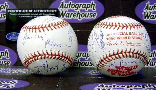 1980 Miracle on Ice Olympic Hockey Team autographed 1980 World Series Baseball (20 Signatures) with Mike Eruzione Jim Craig Mark Johnson Ken Morrow Steve Christoff Neal Broten Jack O' Callahan Buzz Schnider Mark Wells Rob McCllanahan Mark Pavli. Qualified with a tamper-evident serialized hologram and certificate of authenticity.