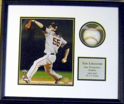 Tim Lincecum autographed baseball Shadowbox Framed (San Francisco Giants). Item comes fully certified with a tamper-evident serialized hologram and certificate of authenticity.