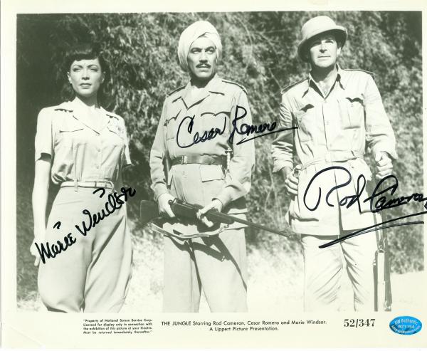 Marie Windsor Rod Cameron and Cesar Romero autographed 8x10 Photo (The Jungle) Image 1. This item come fully certified with Certificate of Authenticity and tamper-evident hologram.
