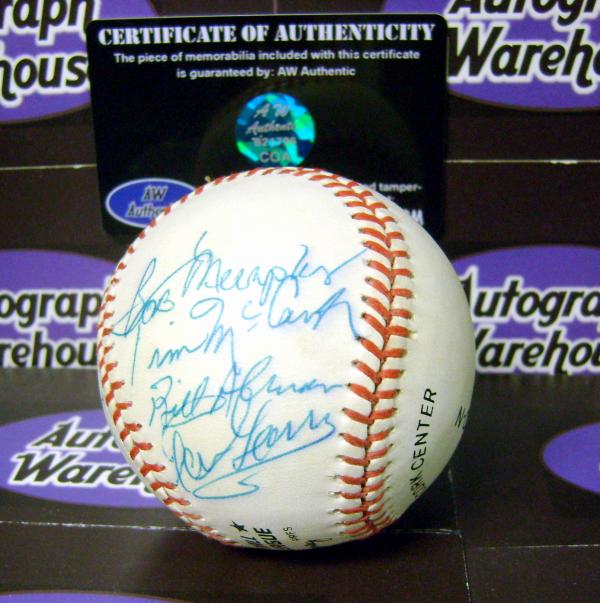 Chris Mullen HOF Umpier Tom Gorman Ralph Kiner Bill Almon Don Robinson Steve Zabriskie Tm McCarver and Bob Murphy autographed Baseball (Fenney NL Ball). This item come fully certified with Certificate of Authenticity and tamper-evident hologram.