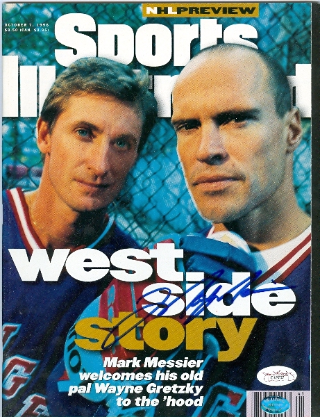 Mark Messier Autographed Sports Illustrated Magazine (New York Rangers) has a Certificate of Authenticity along with matching tamper-proof holograms from Autograph Warehouse guaranteeing the authenticity of this hand-signed autograph. Autograph Warehouse stakes its reputation on every item it sells and authenticity is their number one priority. Each and every autograph is guaranteed for life to be authentic.