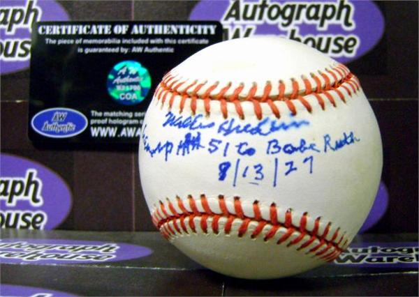 Willis Hudlin autographed American League Baseball inscribed Gave Up HR 51 to Babe Ruth 9 13 27 (toned condition) code 6703. Item comes fully certified with a tamper-evident serialized hologram and certificate of authenticity.