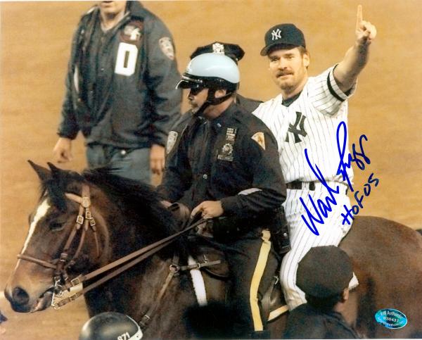 Wade Boggs autographed 8x10 photo (New York Yankees) (1996 World Series riding the Police Horse). This item comes with a Certificate of Authenticity along with matching tamper-proof holograms from Autograph Warehouse guaranteeing the authenticity of this hand-signed autograph.