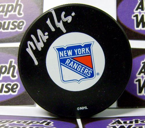 Mike Rogers autographed hockey puck (New York Rangers). Item comes fully certified with a tamper-evident serialized hologram and certificate of authenticity.