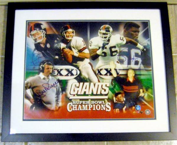 Bill Parcells Phil Simms Lawrence Taylor autographed 16x20 photo (New York Giants 1986 Super Bowl Champion) framed and matted. Items come fully certified with Certificate of Authenticity and tamper-evident hologram.