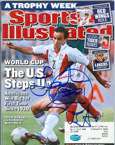 Landon Donovan autographed Sports Illustrated Magazine (Soccer) has a Certificate of Authenticity along with matching tamper-proof holograms from Autograph Warehouse guaranteeing the authenticity of this hand-signed autograph. Autograph Warehouse stakes its reputation on every item it sells and authenticity is their number one priority. Each and every autograph is guaranteed for life to be authentic.