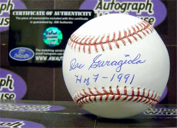 Joe Garagiola autographed Major League Baseball inscribed H of F 1991. Signed items come fully certified with Certificate of Authenticity and tamper-evident hologram.