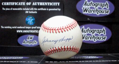 Johnny Hopp autographed American League Baseball (Budig AL Yankees Cardinals Pirates Dodgers). This item comes fully certified with a tamper-evident serialized hologram and certificate of authenticity.