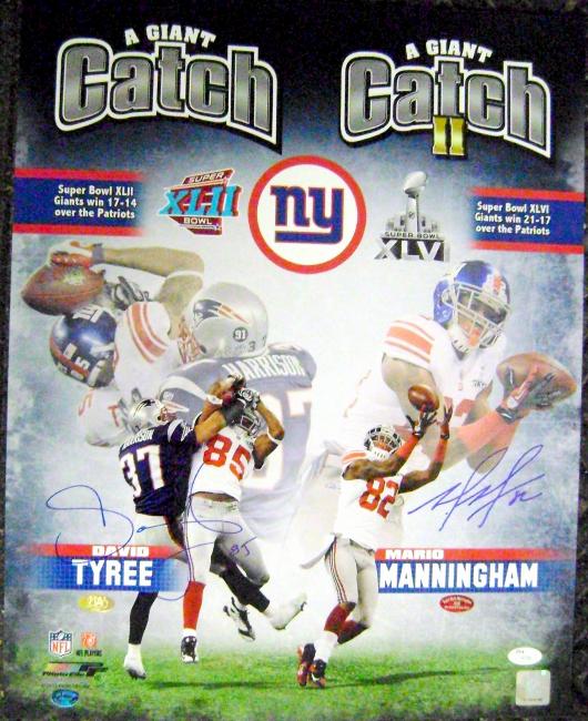 David Tyree & Mario Manningham autographed 16x20 photo (Super Bowl Catches) JSA. Item certified with a tamper-evident serialized hologram and certificate of authenticity.