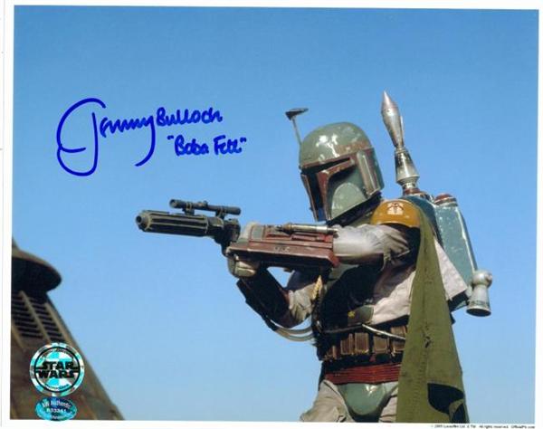Return of the Jedi autographed 8x10 photo by Jeremy Bulloch Boba Fett. Items come fully certified with Certificate of Authenticity and tamper-evident hologram.