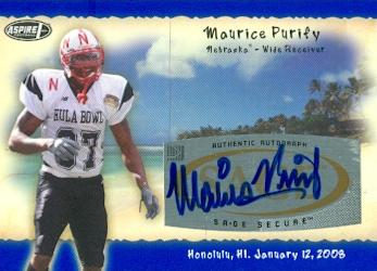 Maurice Purify autographed Football Card (Nebraska) 2008 SAGE Aspire Rookie H19. Item comes fully certified with a tamper-evident serialized hologram and certificate of authenticity.