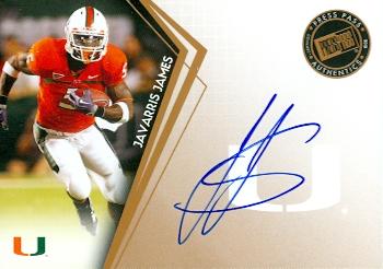 Javarris James autographed Football Card (Miami) 2010 Press Pass Rookie PPS-JJ. Item comes fully certified with a tamper-evident serialized hologram and certificate of authenticity.