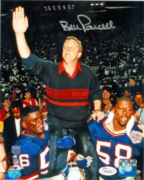 Bill Parcells autographed 8x10 Photo (New York Giants celebration) Image No.1 JSA Authenticated Witnessed item comes fully certified with a tamper-evident serialized hologram and certificate of authenticity.