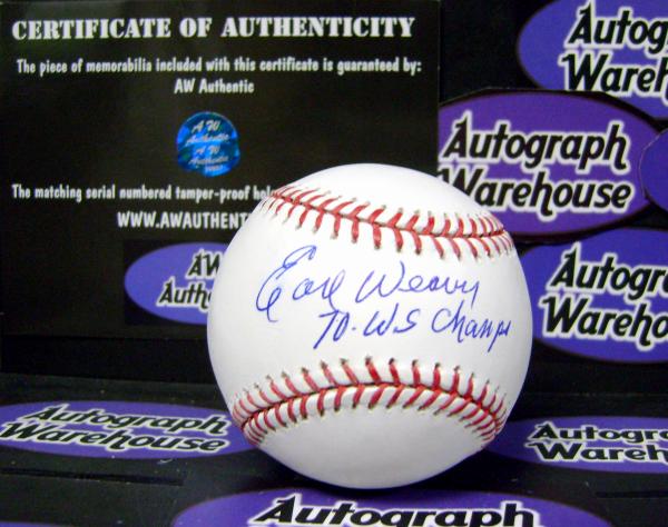 Earl Weaver autographed Baseball inscribed 70 WS Champs item comes fully certified with a tamper-evident serialized hologram and certificate of authenticity. Officially licensed MLB product.