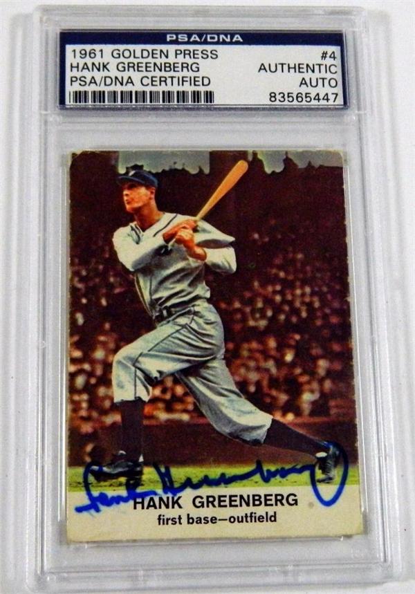 Hank Greenberg autographed Baseball Card (Detroit Tigers) 1961 Golden Press No.4 PSA/DNA Certified item comes fully certified with a tamper-evident serialized hologram and certificate of authenticity. Officially licensed MLB product.