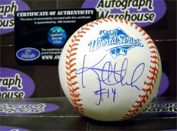 Kent Hrbek autographed 1991 World Series Baseball item comes fully certified with a tamper-evident serialized hologram and certificate of authenticity. Officially licensed MLB product.