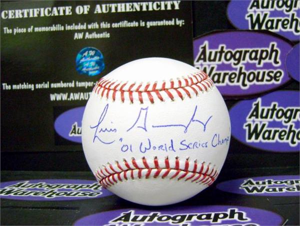 Luis Gonzalez autographed Baseball inscribed 01 World Series Champs item comes fully certified with a tamper-evident serialized hologram and certificate of authenticity. Officially licensed MLB product.