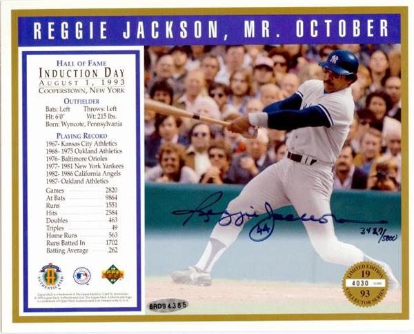 Reggie Jackson autographed 8x10 Photo Hall of Fame Induction (New York Yankees) Upper Deck Certified No.BAD94385 item comes fully certified with a tamper-evident serialized hologram and certificate of authenticity.